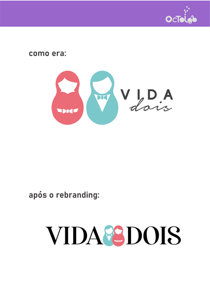 Vida Dois is a blog that covers everything related to weddings. The client wanted to modernize the brand, but without changing the symbol to which she is attached, so our challenge was to transform the brand without changing the symbol and adding characteristics of the portal: Elegance, seriousness and sophistication.